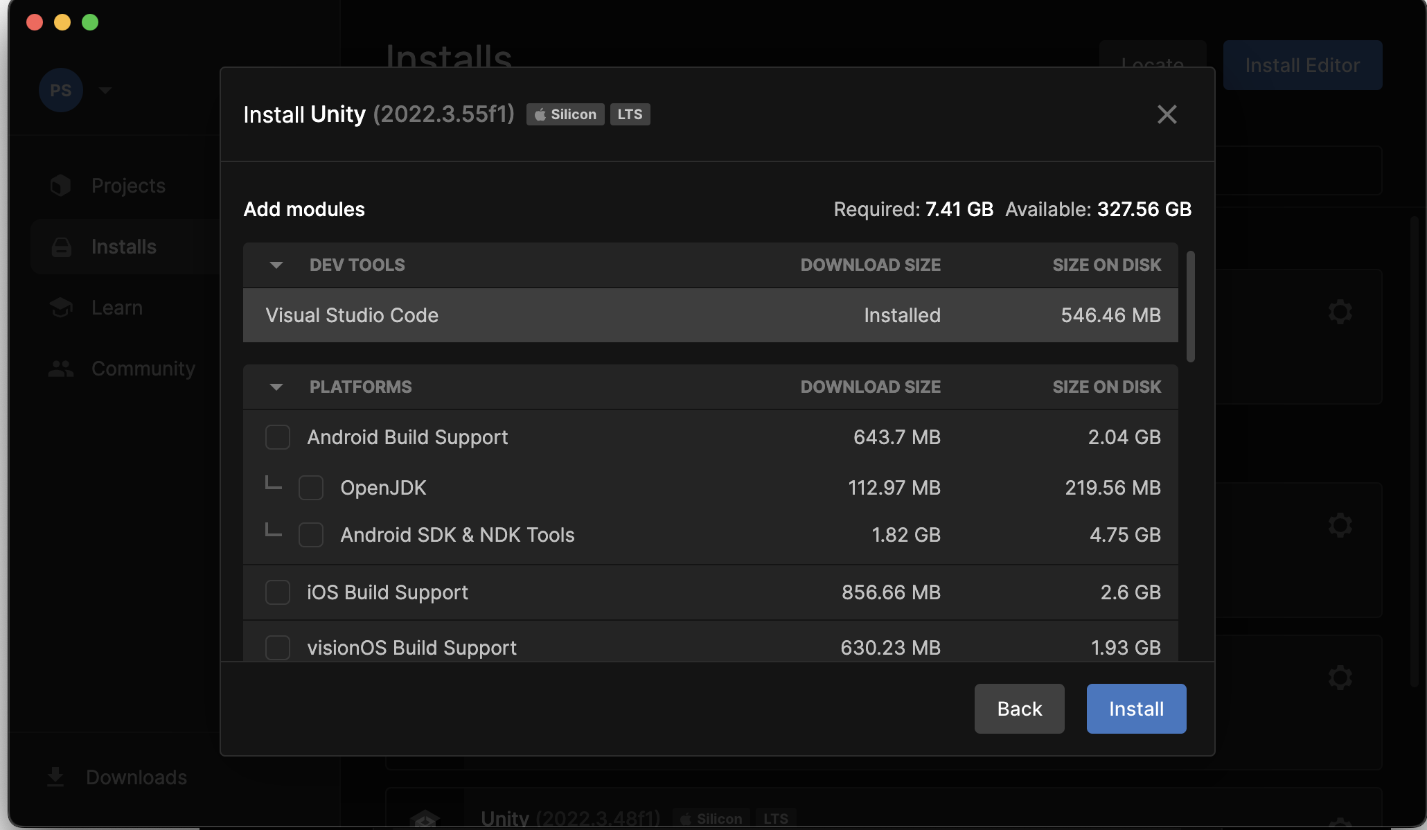 비주얼코드는 유니티 허브설치과정에서 같이 설치