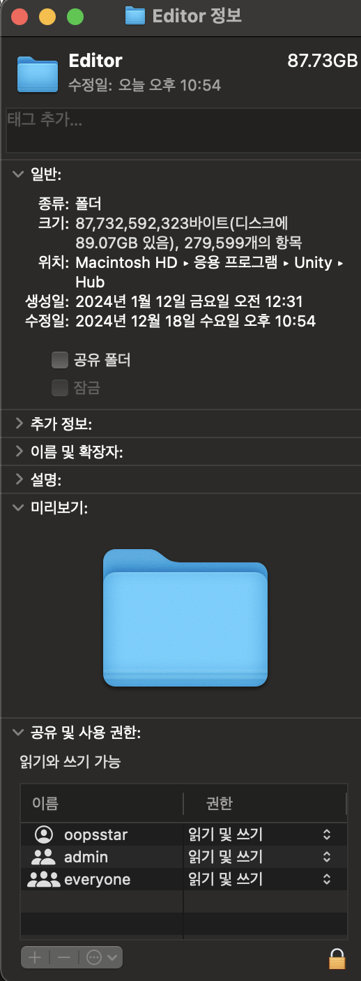 그래도 실패시 유니티 허브 폴더 권한 변경