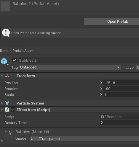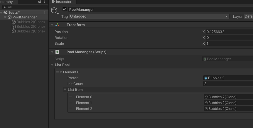 Prefab안에 Effect Prefab인 Bubble 2를 넣었고 InitCount 3를 넣습니다.