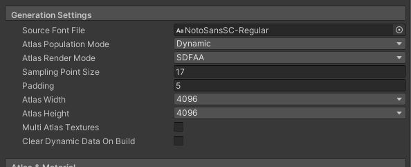 Atlas Population Mode : Dynamic 으로 해둘시 사용되어지는 문자만 아틀라스에 생성됩니다.