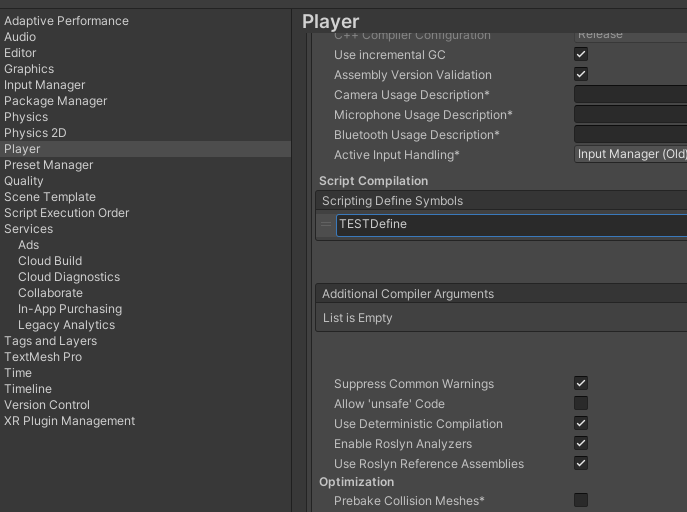 Debug.Log("TESTDefine"); //사용자 정의 Define